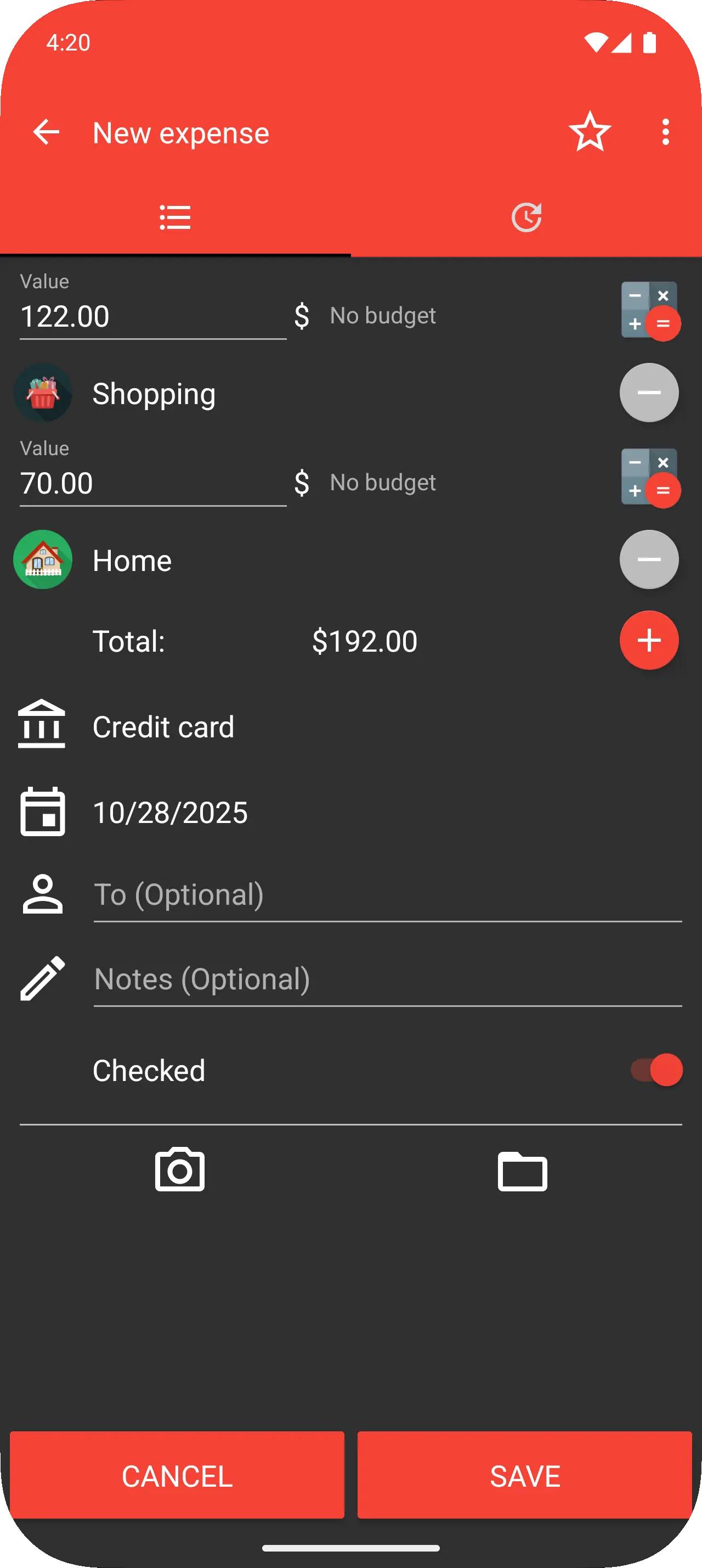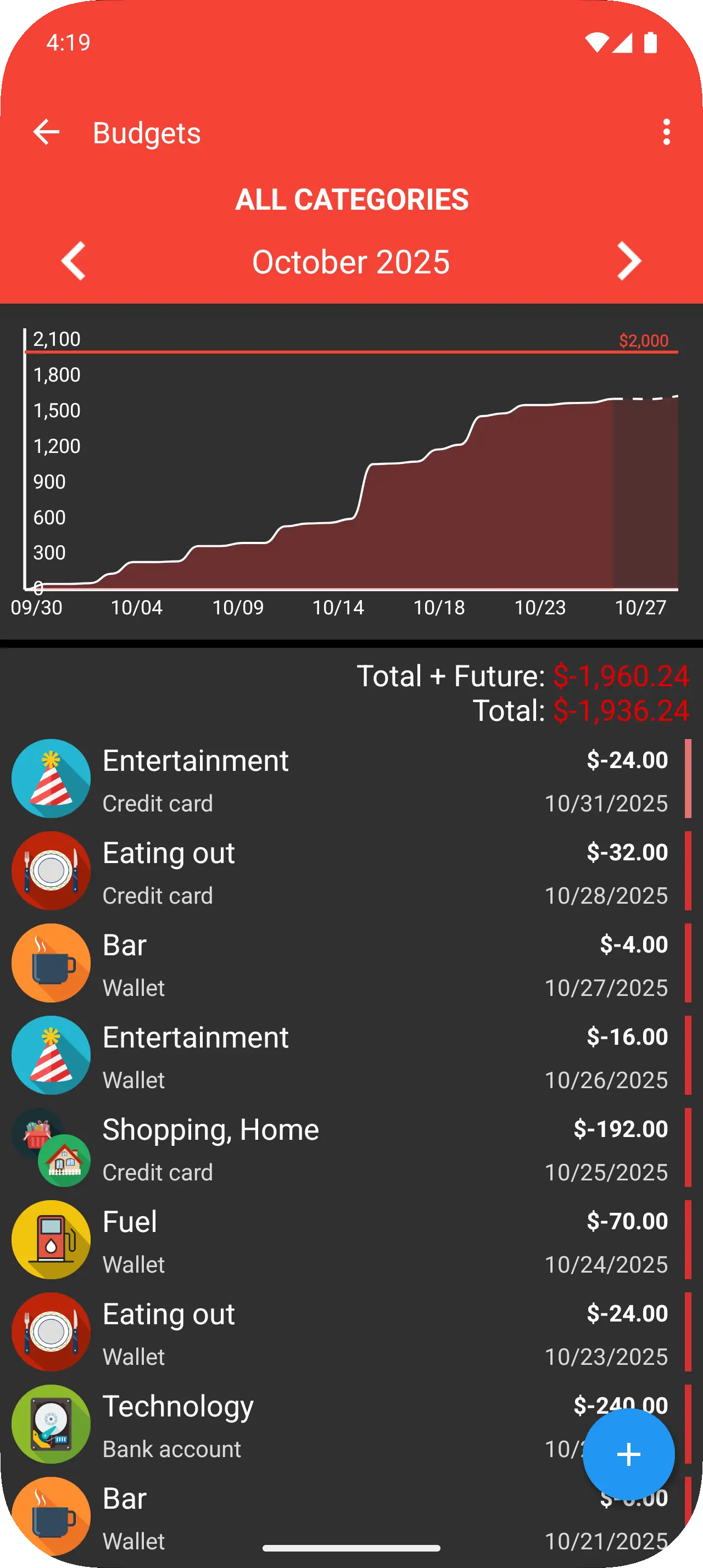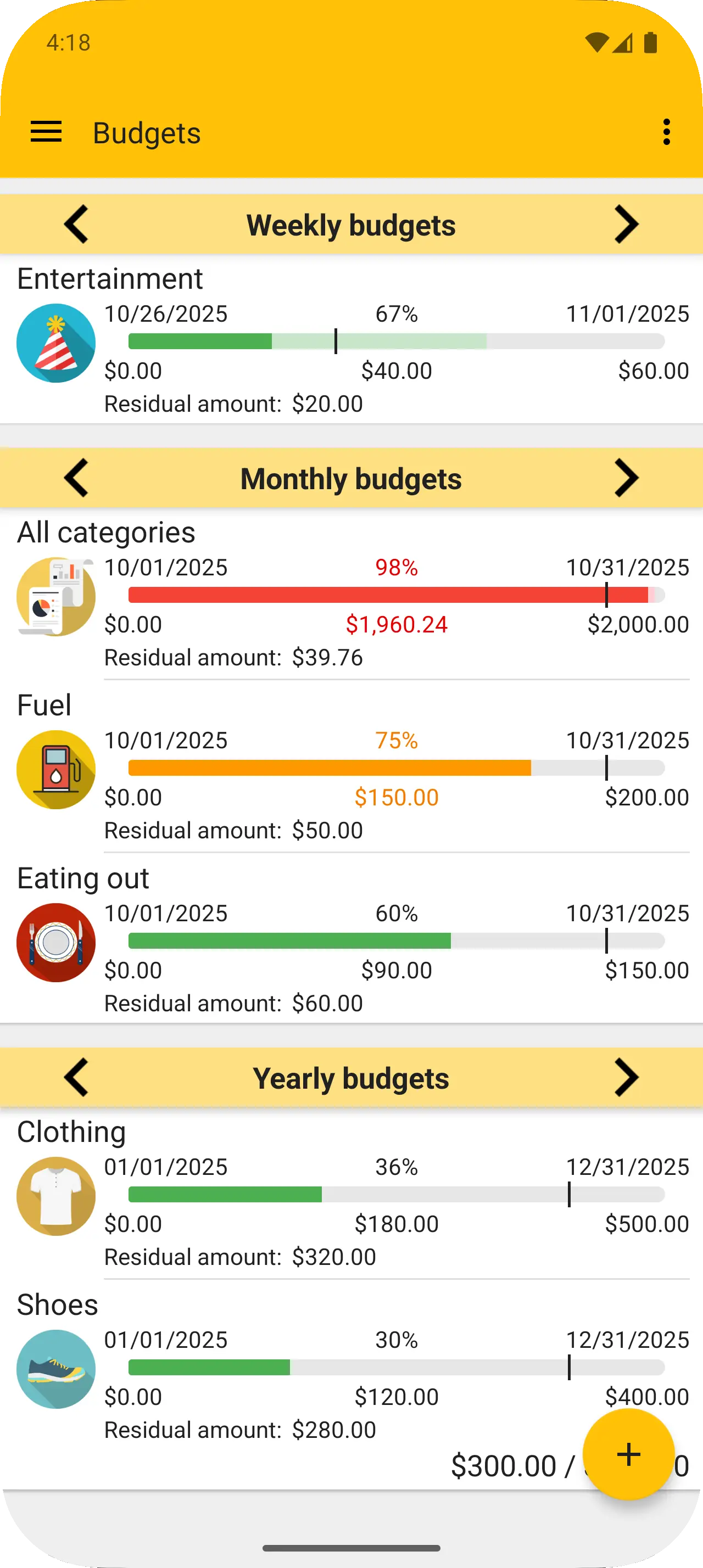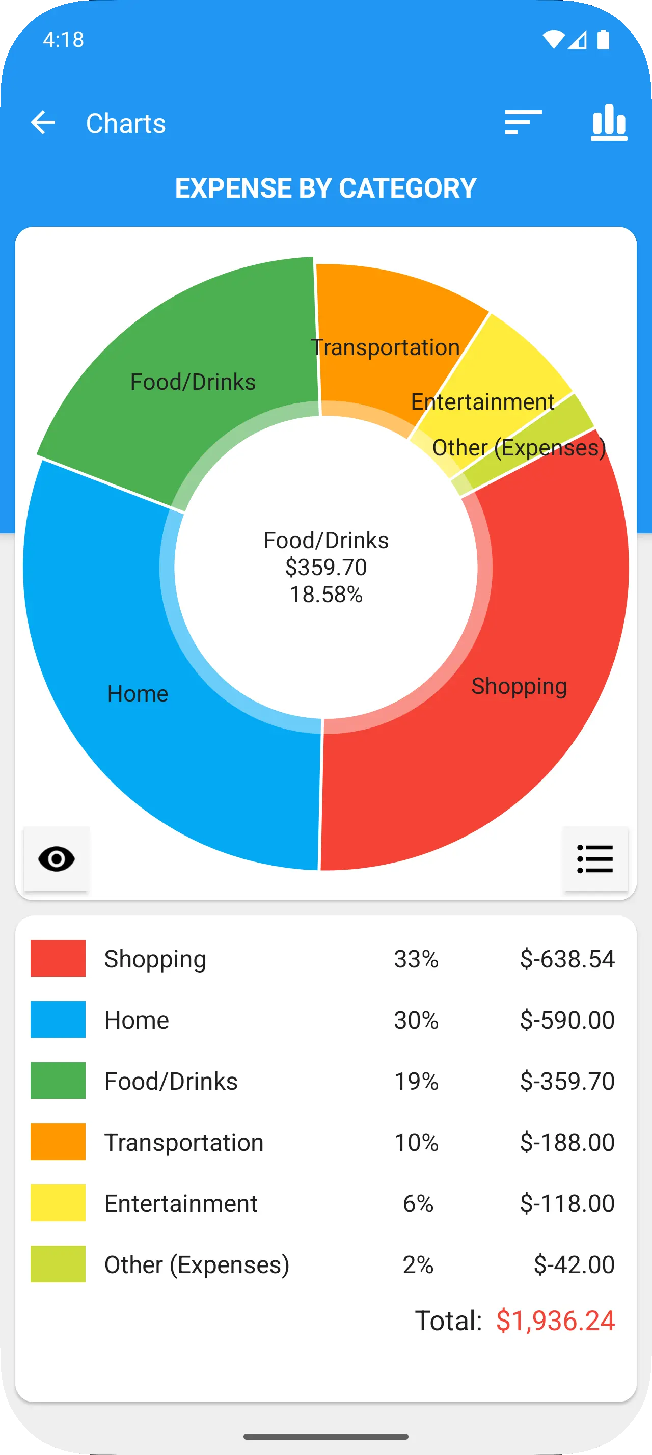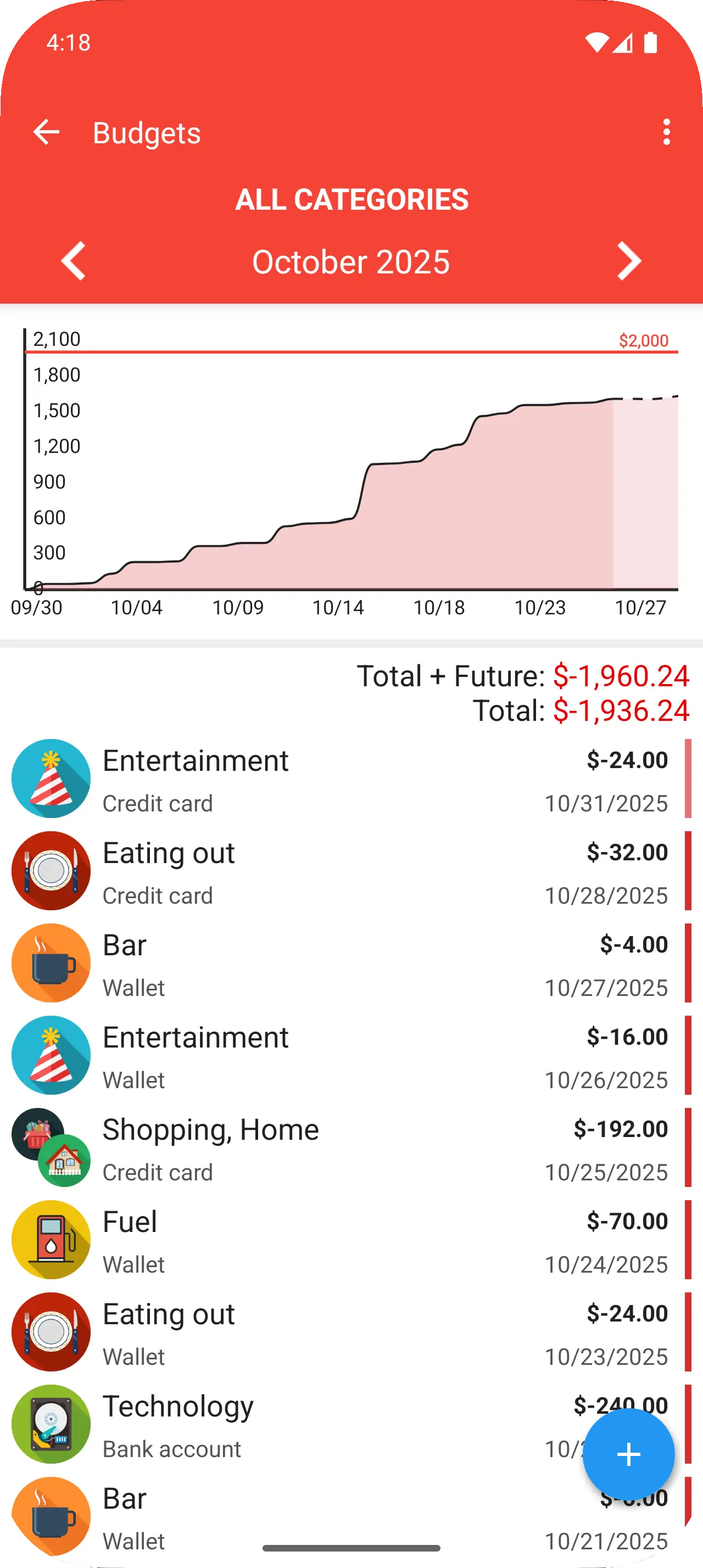 With Fast Budget, you can categorize your spending with unlimited custom categories and subcategories.
